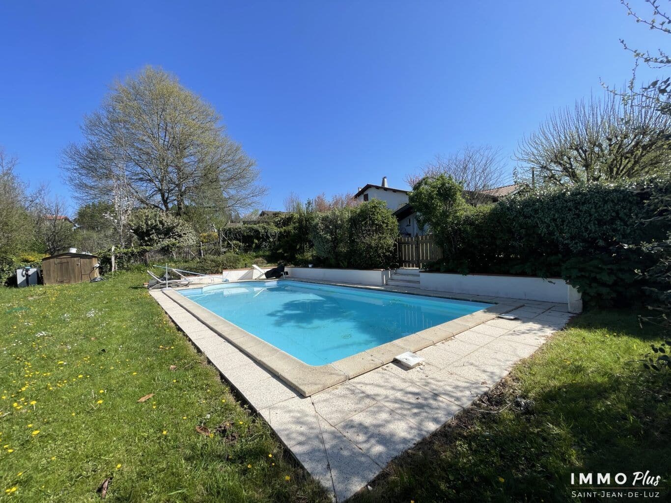 Le jardin arboré profite d’une belle exposition au Sud et d’une piscine à l’abri des regards.